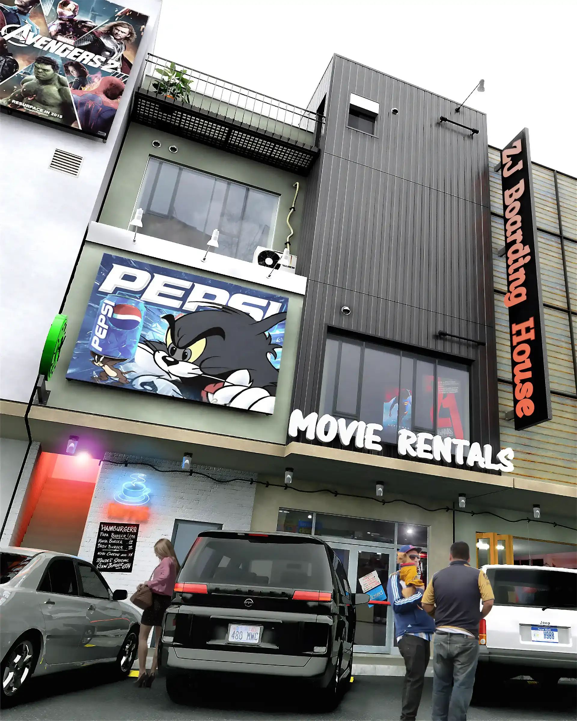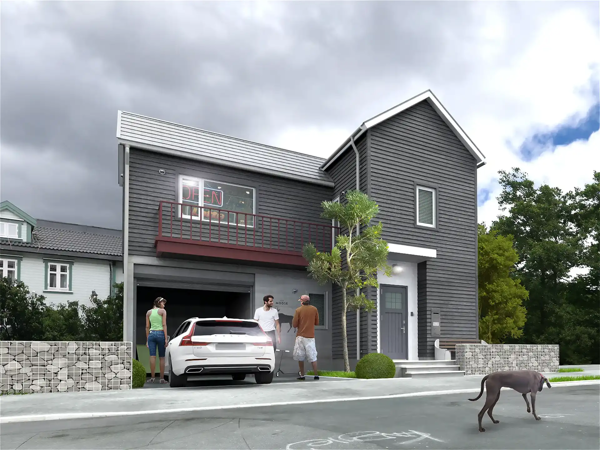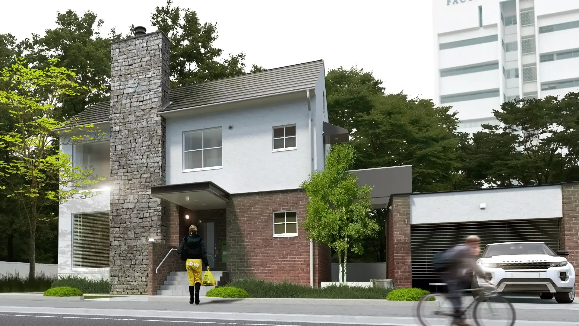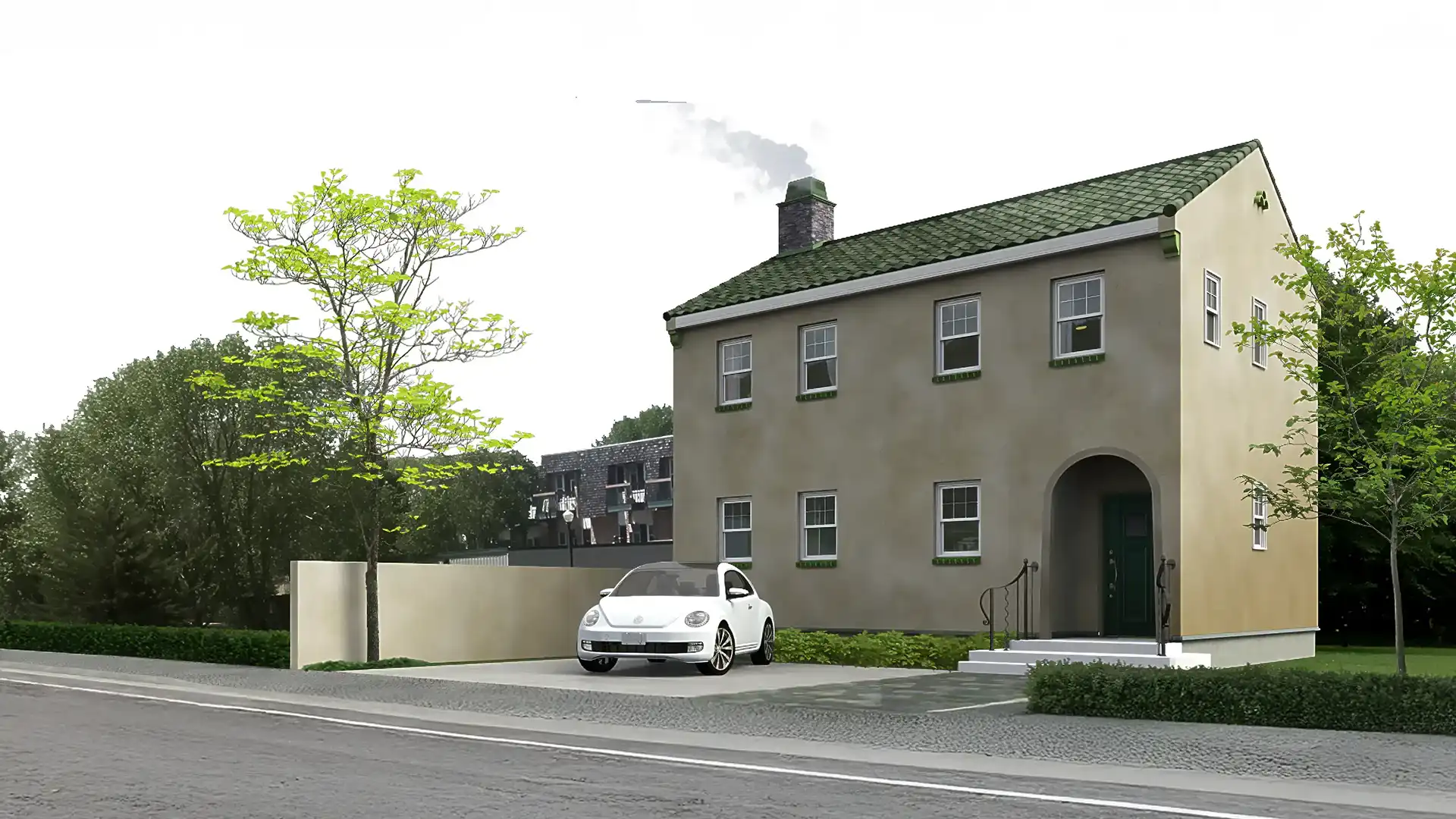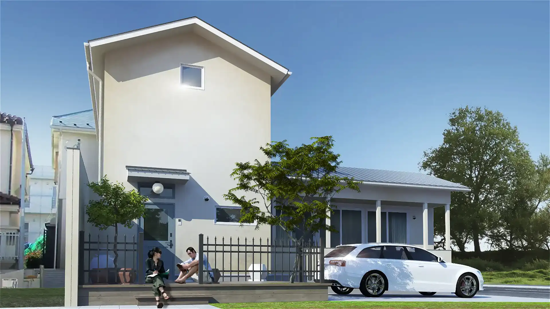 建物のスケール感や周辺環境との調和を伝える外観CGパースを掲載。戸建住宅から商業施設まで、多彩な建築ビジュアルをご覧ください。