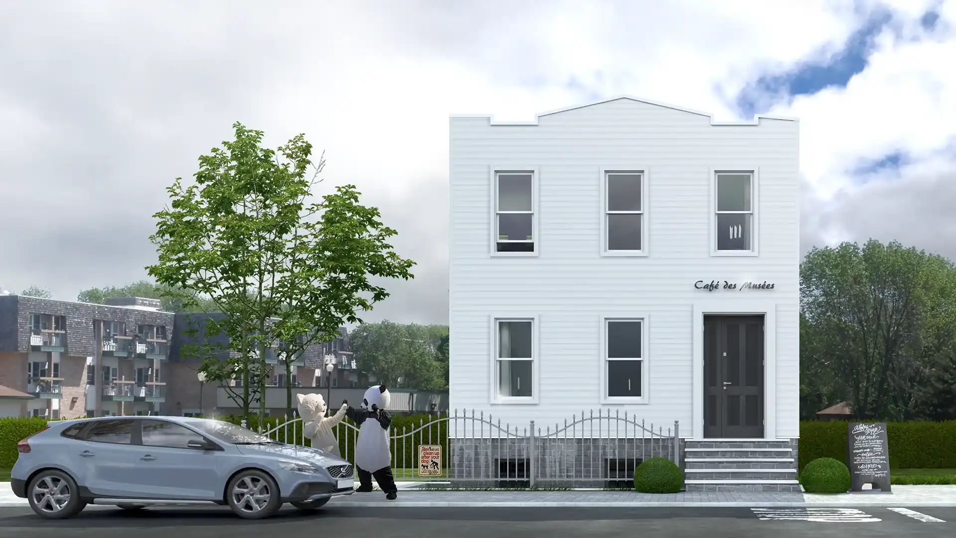 建築物の外観は、そのプロジェクトの「顔」となる最も重要な要素です。スタジオブロックでは、図面だけでは伝わらないスケール感、マテリアルの質感、そして周辺の景観との調和を3DCGによって精密に可視化。日照シミュレーションに基づいた正確な光の表現で、時間帯による建物の表情の変化までリアルに描き出す外観パースを制作しています。