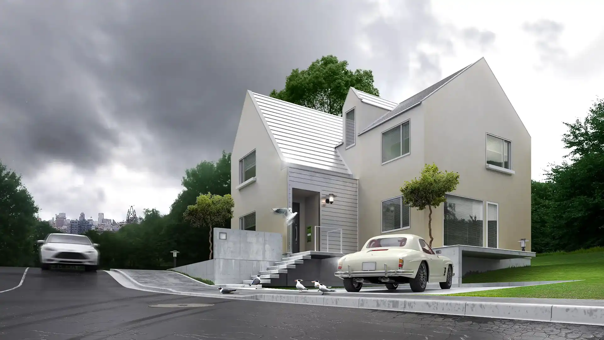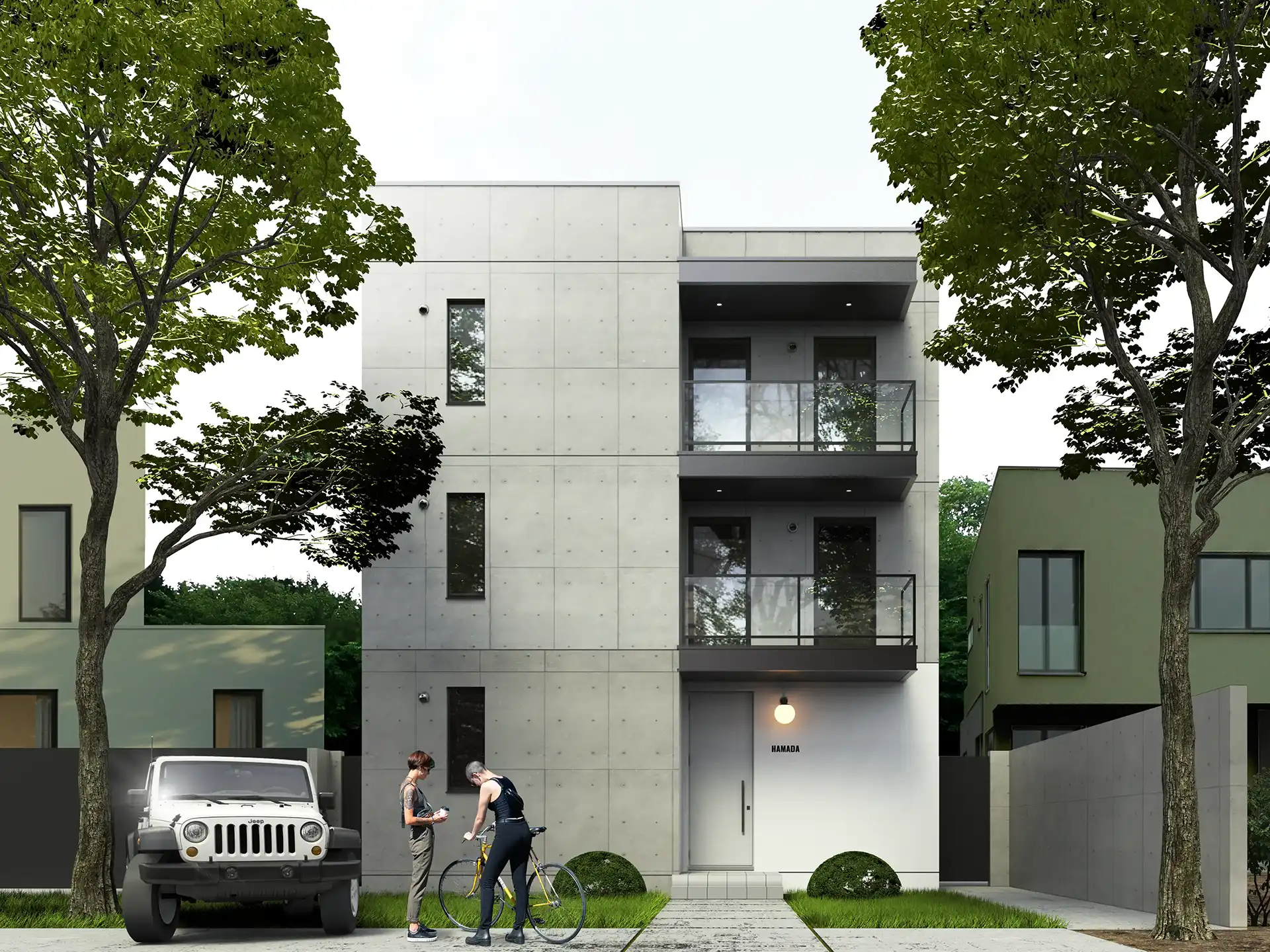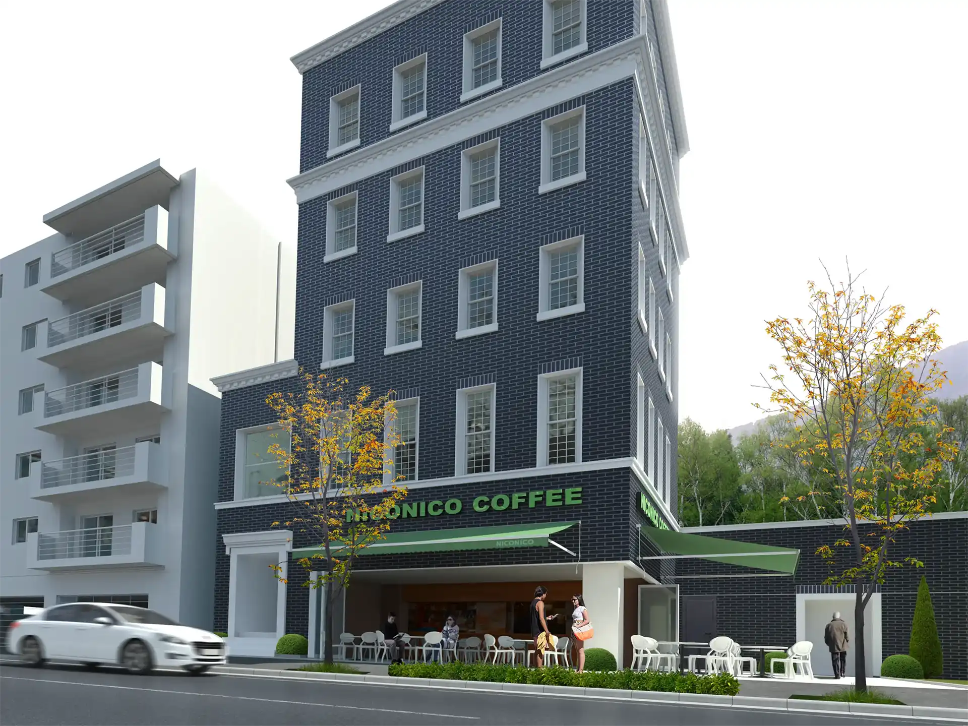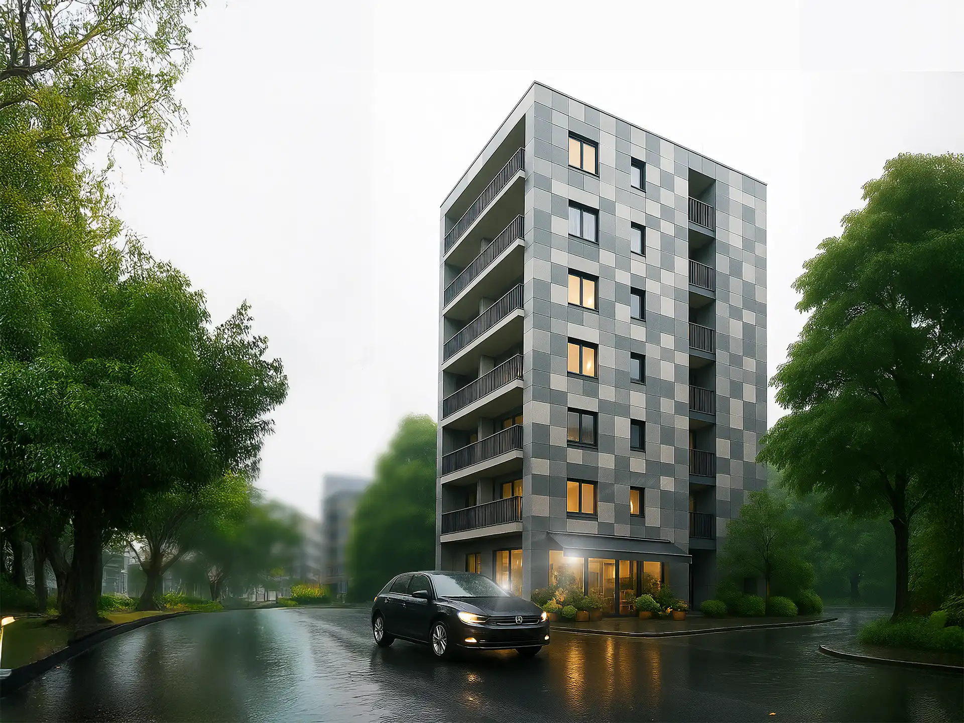 建築物の外観は、そのプロジェクトの「顔」となる最も重要な要素です。スタジオブロックでは、図面だけでは伝わらないスケール感、マテリアルの質感、そして周辺の景観との調和を3DCGによって精密に可視化。日照シミュレーションに基づいた正確な光の表現で、時間帯による建物の表情の変化までリアルに描き出す外観パースを制作しています。