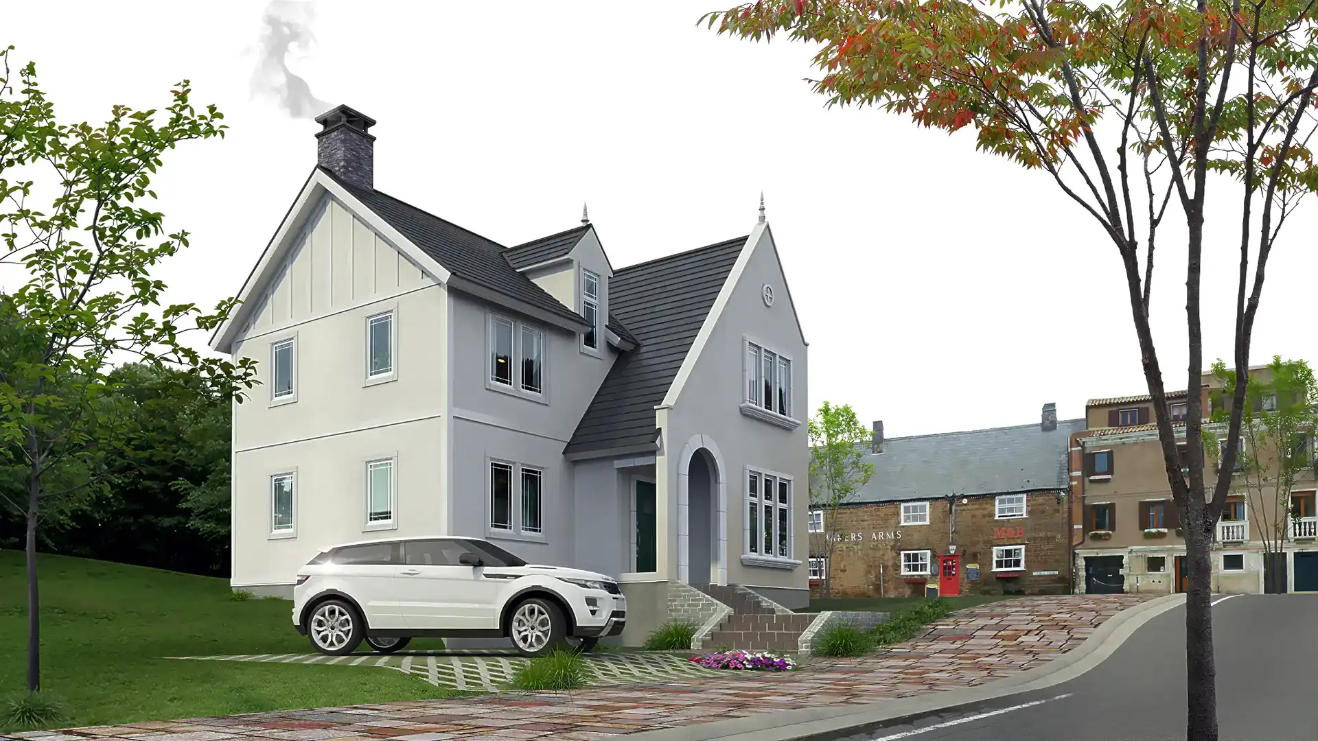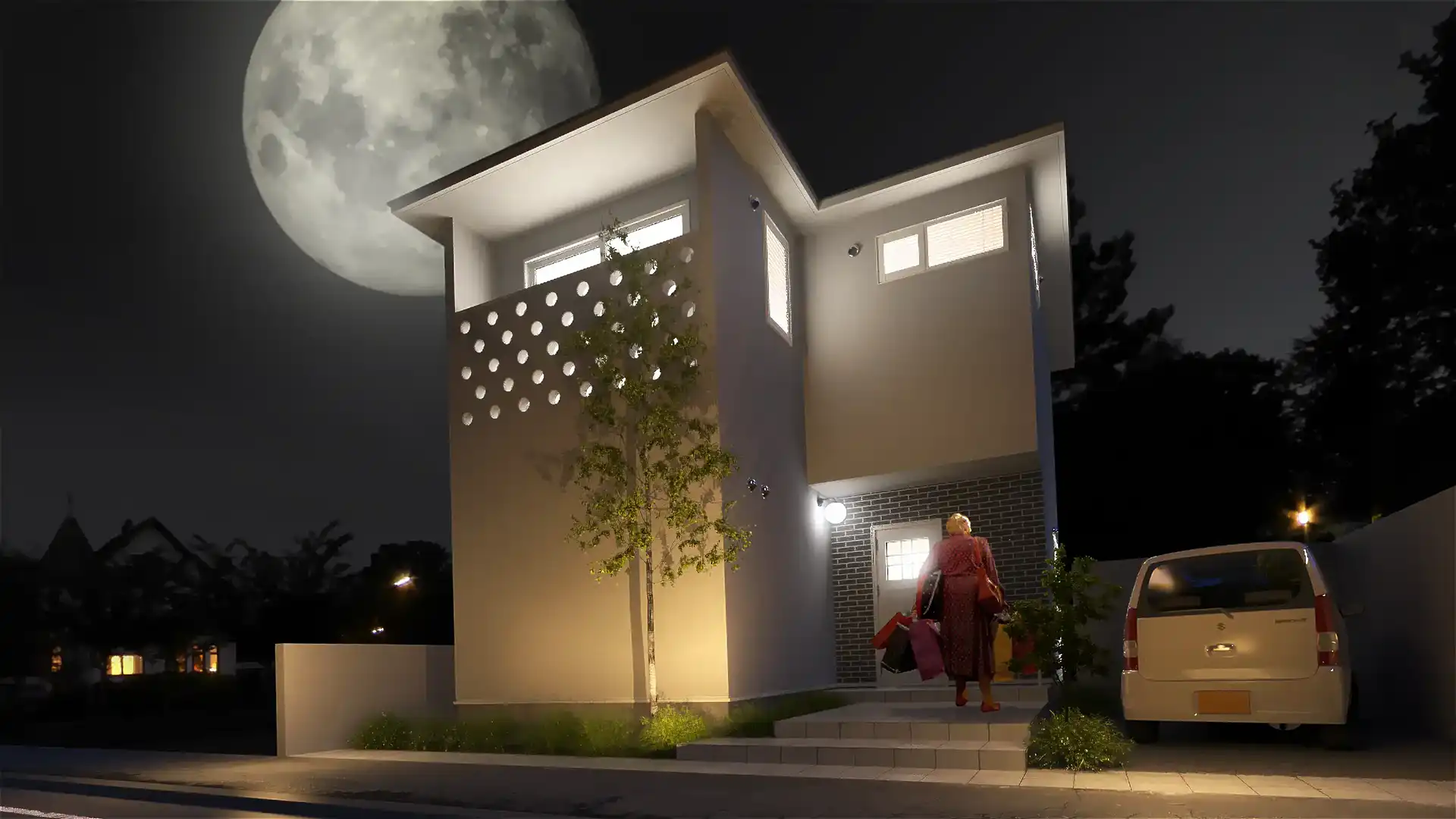 建物のスケール感や周辺環境との調和を伝える外観CGパースを掲載。戸建住宅から商業施設まで、多彩な建築ビジュアルをご覧ください。